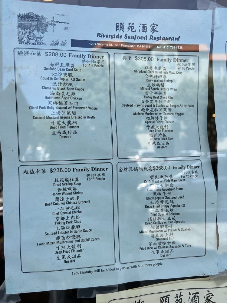 If you're in San Francisco and seeking delicious Cantonese cuisine, look no further than Riverside Seafood Restaurant. Situated at 1201 Vicente St, this Asian-owned establishment offers a wide array of menu options like House Special Chow Mein, Deep Fried Sesame Prawns, and Broccoli Beef. The restaurant prides itself on offering vegetarian choices, wheelchair accessibility, and even gender-neutral restrooms. Customers rave about the quality of the food, attentive service, and vibrant atmosphere. Whether you're craving a multi-course banquet or a casual dim sum experience, Riverside Seafood Restaurant delivers consistently tasty dishes. Don't miss out on their Beijing style spareribs or fresh lobster noodles – they're a must-try! With nearly two decades of culinary excellence under its belt, this restaurant has become a beloved staple in the San Francisco dining scene. Plan ahead for busy weekend nights and enjoy a memorable dining experience at Riverside Seafood Restaurant.